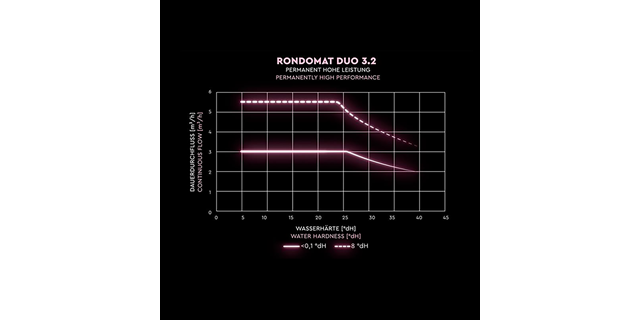 The Rondomat Duo impresses with high flow rates despite a rela­tively small resin volume. This is made possible by the uniquely short salt dissolving time of the regen­er­a­tion salt.
