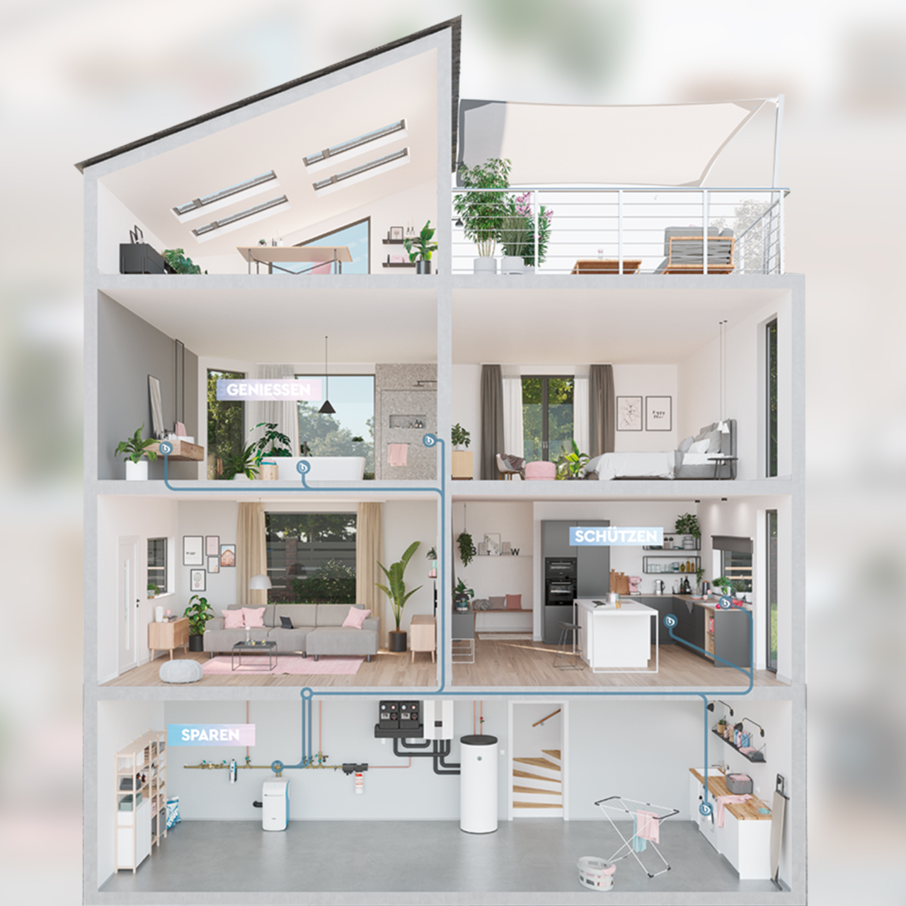 As an optionally available accessory, it can be used to detect possible water leakage at up to 10 other locations in the house - e.g. in the kitchen or bathroom.
